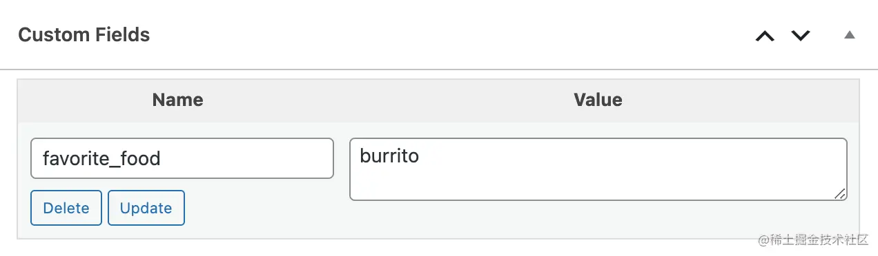 WordPress中自定义字段的用户界面是这样的。