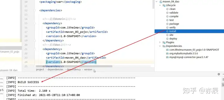 将需要被依赖的项目maven_04_dao ,使用maven的install命令,把其安装到Maven的本地仓库中。